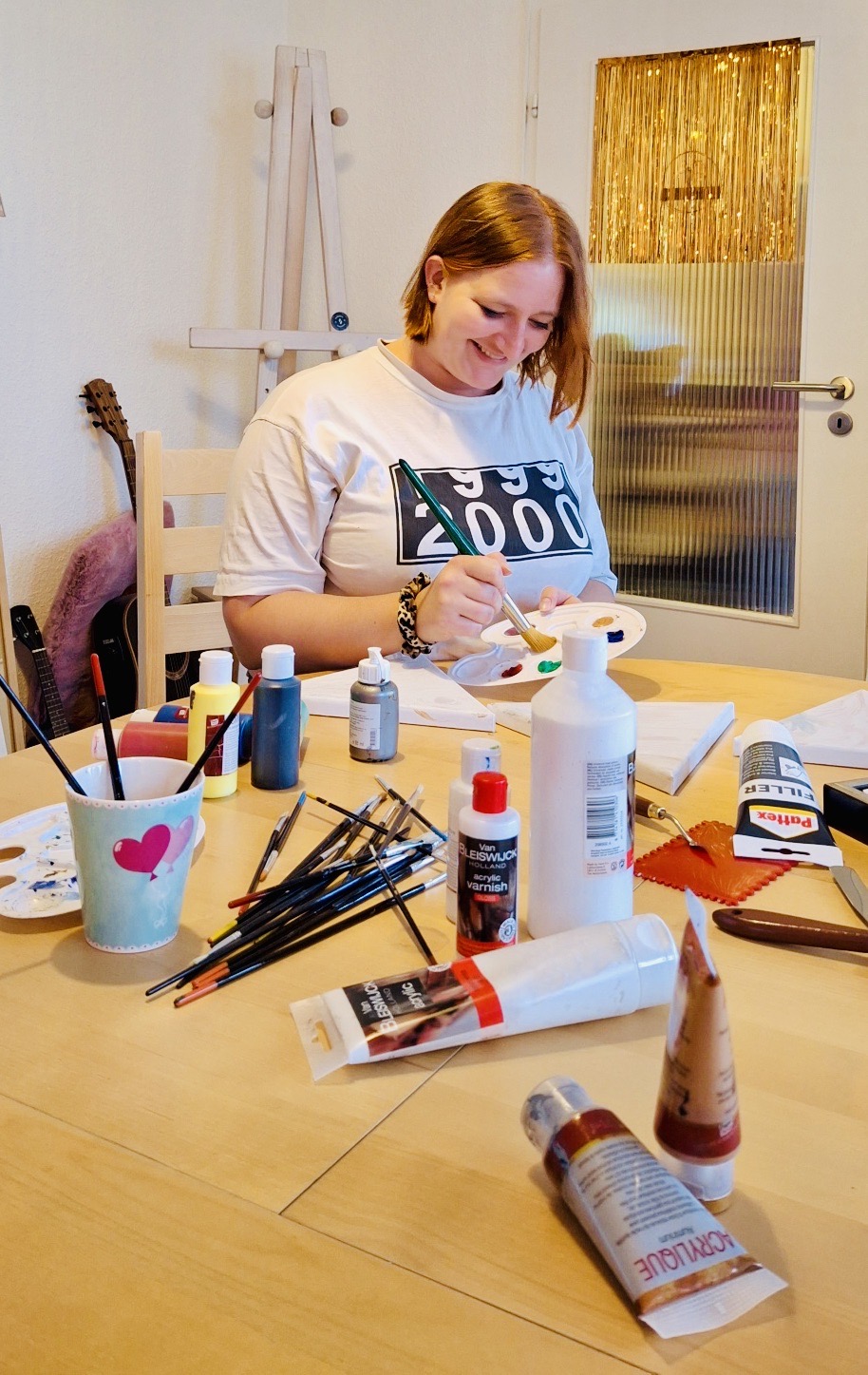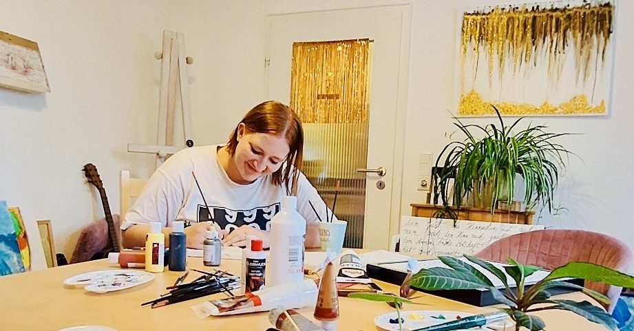 Meine Malerei gestaltet sich ganz nach dem Motto: „der Weg ist das Ziel.“ Dabei habe Ich gelernt, mir keinen Druck mehr zu machen, ein perfektes Bild zu kreieren.